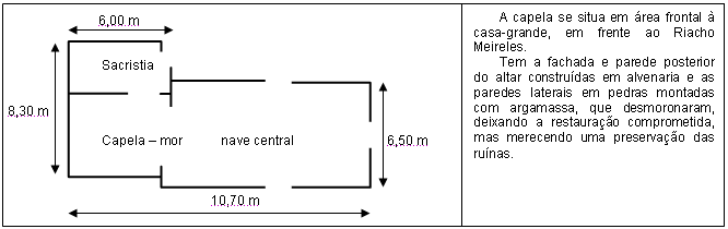 As construções existentes contemplam a casa grande, estábulo, banheiro de carrapaticida, estrumeira, moita e casas de moradores, que conservam as linhas arquitetônicas originais. Também pode-se observar as ruínas da capela, em frente à casa grande.