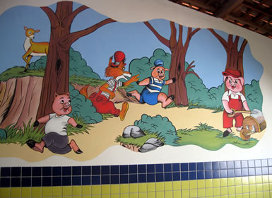 Uma das características da escola são os belos murais em cada uma das salas pintados pelo artista Jamerson. As salas tem os nomes de histórias infantis, como Chapeuzinho Vermelho, Peter Pan, Três Porquinhos, Branca de Neve, Pinóquio, Cinderela, João e Maria, A Bela e a Fera.