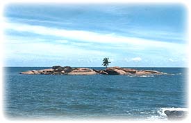 animados, com seu solitário coqueiro. Com a maré baixa chega-se