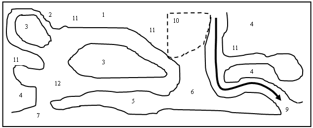Na lama das áreas afastadas da antiga foz e das áreas que não sofreram com o assoreamento, predominam raízes e materiais decompostos, restos de galhos, folhas e animais, enquanto que nas áreas próximas aos assoreamentos, praticamente a lama encontra-se abaixo de várias camadas de areias de origem marinha, carreadas pelo vento e correntes marinhas.